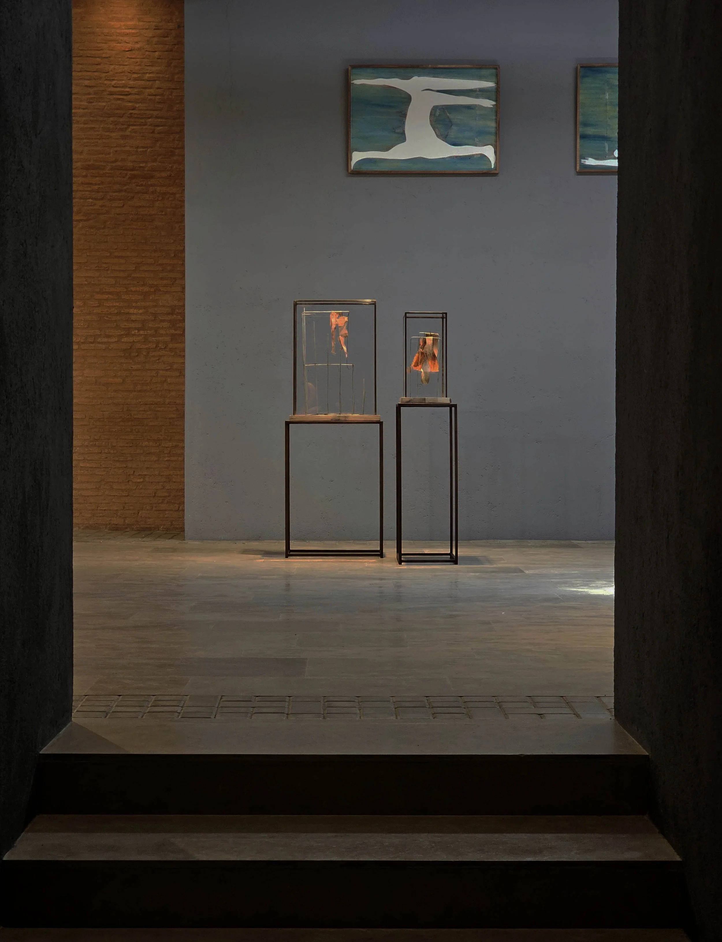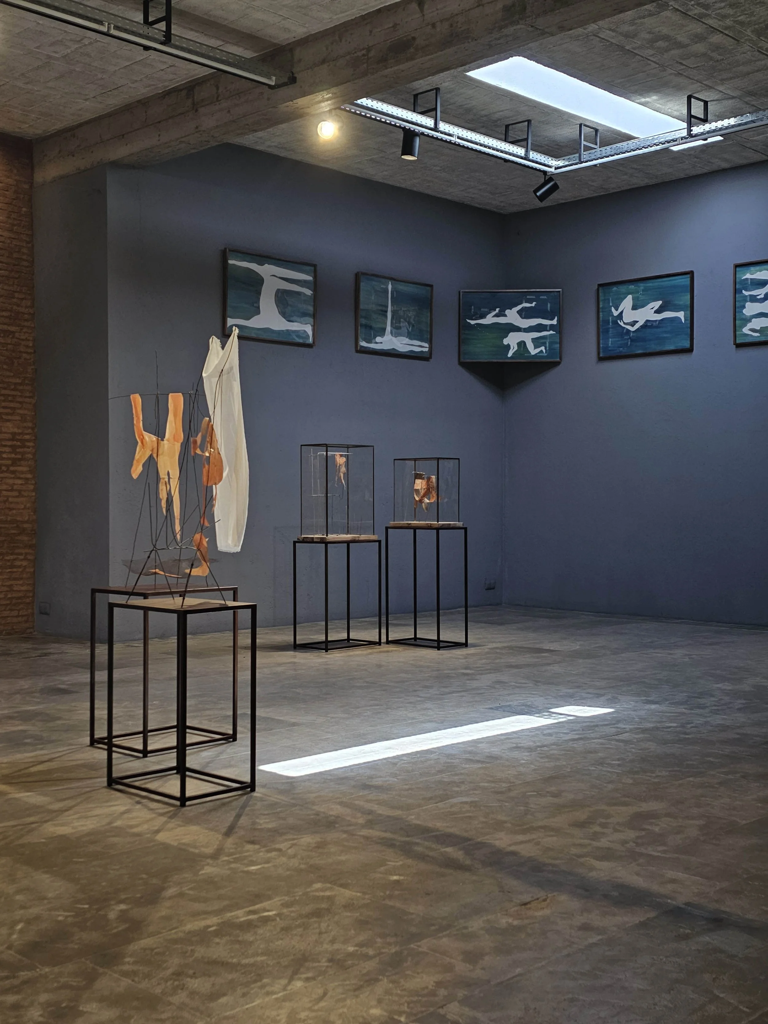 Between the exposure of the streets and the intimacy of the secret garden, Yasmine Hatimi creates an emotional tension that finds its prolongation in the duplication of the bodies in Ignacio Lobera’s work. From paper to sculpture, the bodies unfold in a constant movement and engage a singular space where interior and exterior meld. The artist himself becomes the subject of study in a game of alternating perspective, where questionings and doubts are incorporated in spectral silhouettes revisiting the performances of shadow theatre. The Médula series thus follows a random gesture and traces a sensitive reality where body and space converge. Raising multiple perceptions of the body and its displacements through unstable spaces, the distortion of the figures reflects the inner commotions.